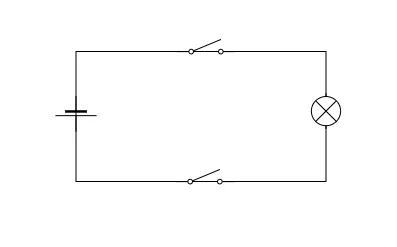 This scenario can be developed to represent the logical behaviour of an AND gate. Imagine now that this room is a bit strange and there are two switches controlling the operation of the bulb. If both switches are off the bulb will not emit light. If one of the switches is on and the other is off the bulb will not emit light. The bulb will only emit light when both switches are on.