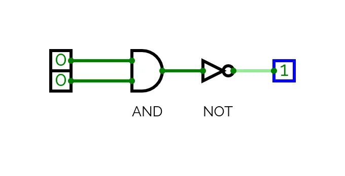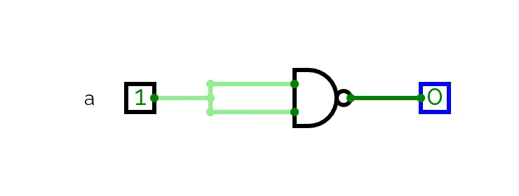 Our circuit uses three different types of logic gate. This is satisfactory but it would better if we could simplify the circuit even further and use a single gate rather than three. To do so we need to further reduce our logic and introduce another type of logic gate: NAND.
