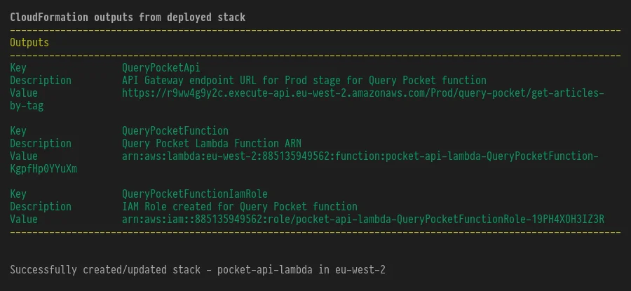 sam deploy --template-file /home/thomas/repos/lambdas/pocket-api-lambda/pkg.yaml --stack-name <YOUR STACK NAME>