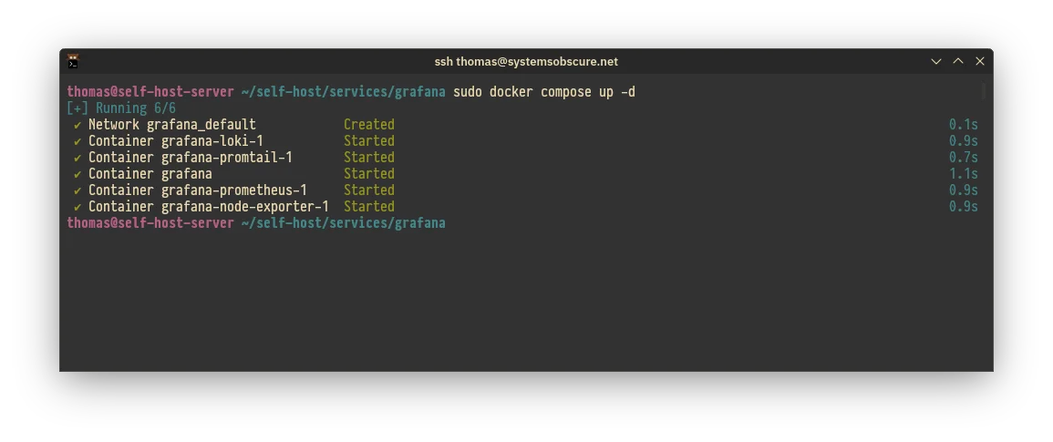The first service I am going to host is Grafana. This is a good software to start with because it will allow me to easily access server logs and build dashboards that display performance and capacity metrics about the server and the services I’m running.