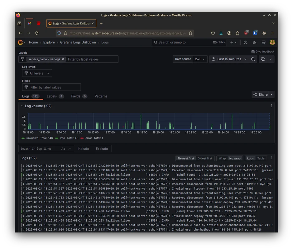 Later, when I have additional services, I’ll add additional dashboards and Loki queries so I can analyse everything that is going on.